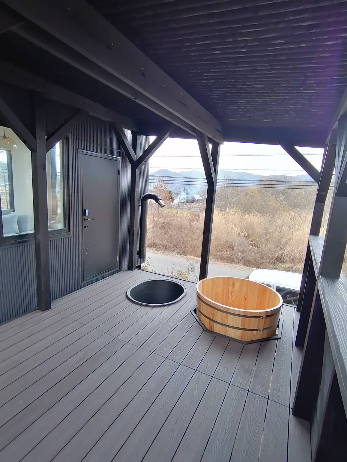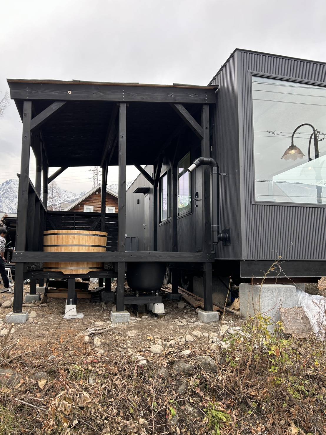 白馬村で施工したサウナデッキが完成しました✨木製樽風呂と黒い水風呂を備え、外気浴も楽しめる贅沢なプライベート空間です🌿山々を眺めながら“ととのう”極上のロケーションを実現しました🔥サウナデッキ施工のご相談もお気軽にどうぞ!